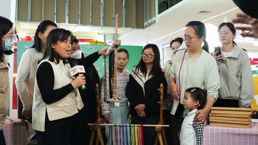 清华大学访问学者梁雪芳在金逸广场教学,以上海市花白玉兰为主题,萃取苏绣经典针法,为居民提供零基础DIY体验。参与者在一针一线中感受国家级非遗魅力,完成专属苏绣团扇作品。